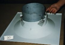 (9) This is a grease removal filter being tested to UL1046 for its ability to stop flame transfer down a kitchen exhaust. This test is available in Australia, done by me, despite rumours to the contrary by some keen to avoid the mandatory test called by BCA and AS1668.2-1991 Clause E7.1. |